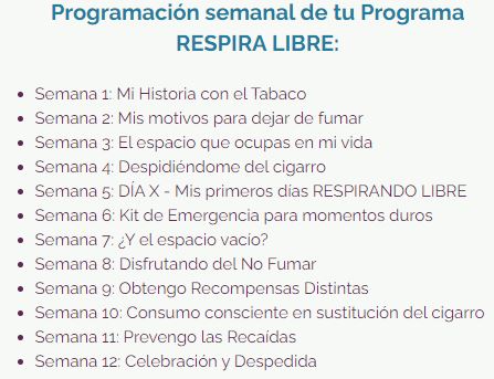 - El seguimiento se mantendrá por vía Whatsapp durante los 3 meses de duración del Programa RESPIRA LIBRE.